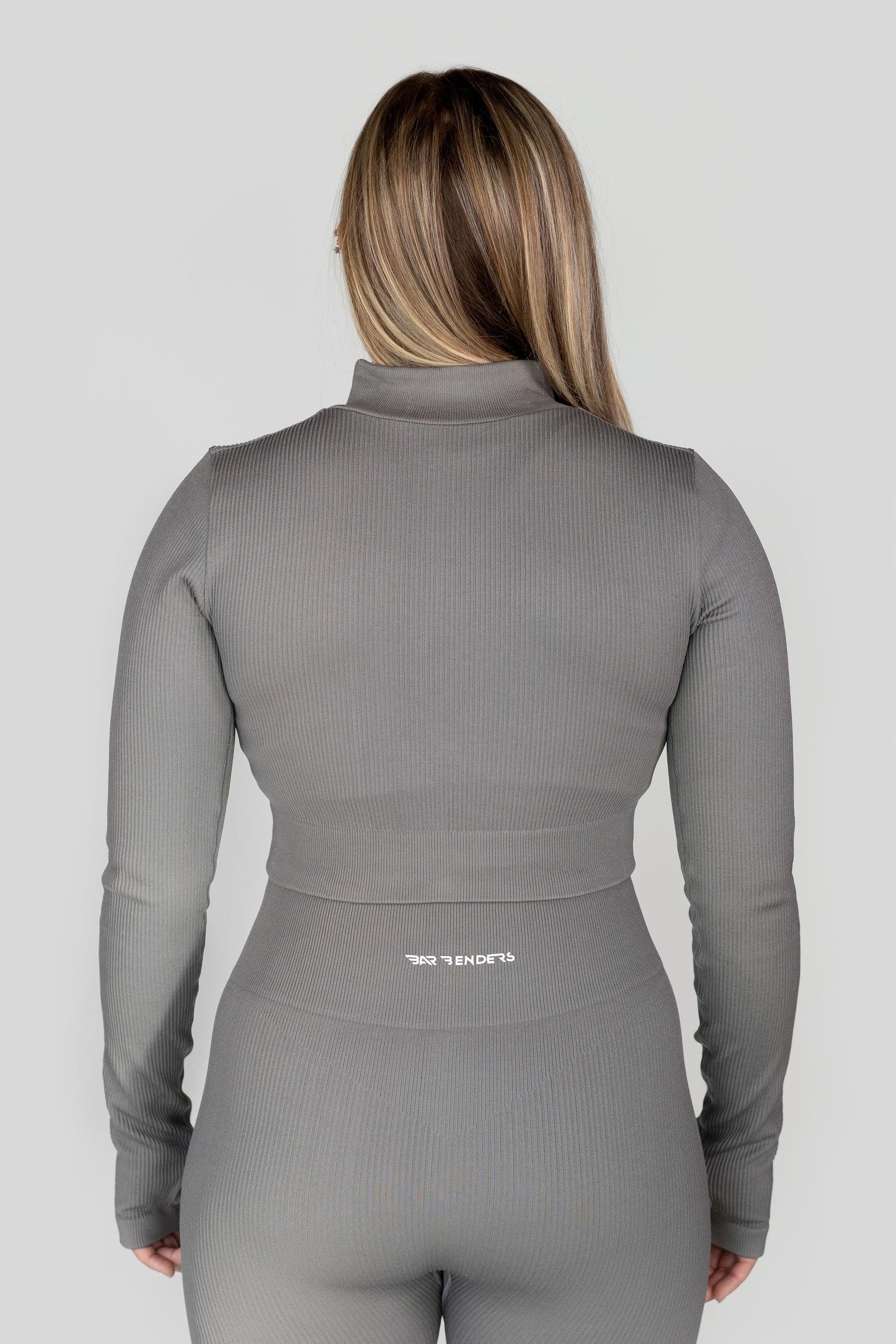 Ladies long sleeve 3-quarter zip athletic crop top offering a stretchable fabric made to move with you.